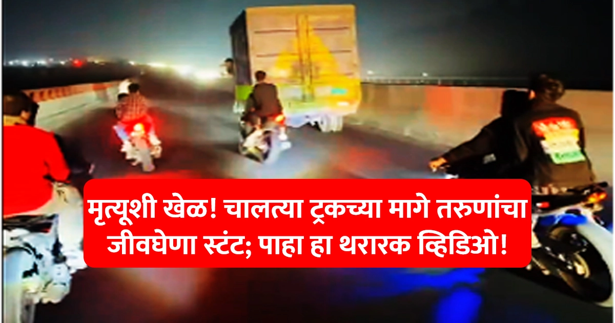 Toggleया व्हिडिओमध्ये जे दृश्य दिसत आहे, ते पाहून कोणाच्याही अंगावर काटा येईल. काही तरुण एका वेगाने जाणाऱ्या ट्रकच्या अगदी मागे चिटकून, जीवघेणी स्टंटबाजी करत आहेत. आजकालच्या सोशल मीडियाच्या युगात फक्त चार ‘लाईक्स’ आणि ‘व्ह्यूज’ मिळवण्यासाठी हे तरुण आपल्या मृत्यूच्या दाढेत हात घालत आहेत.